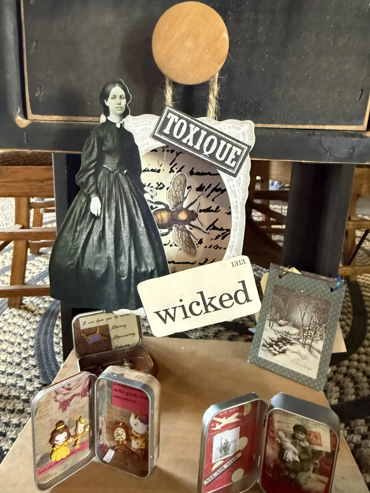 Wooden Decor: Hand-carved and assembled wooden items.